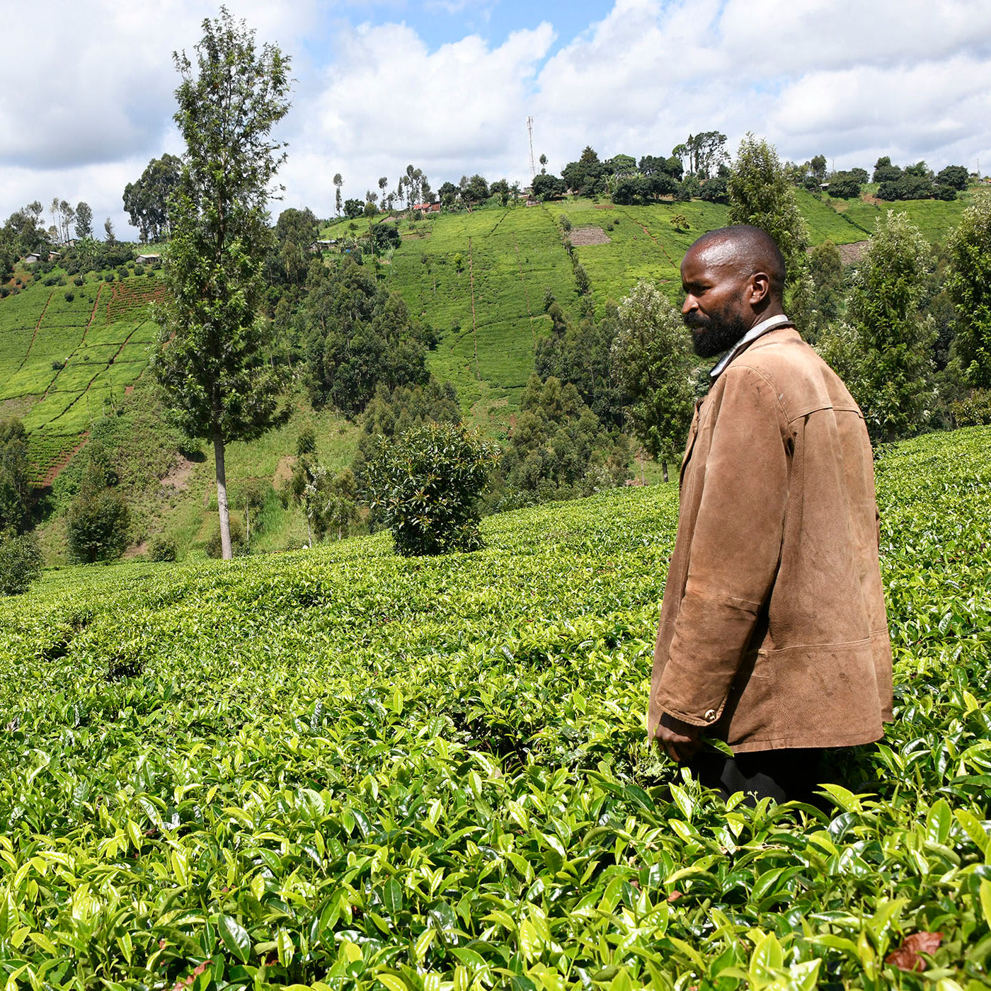 In the photo: Boniface Mbuthiaarm in Thika, Kenya. A participant in the project for four years, he has planted 200 avocado trees on his tea plantation. These new trees have improved the soil, boosted harvests, and brought birds and butterflies back to the area.